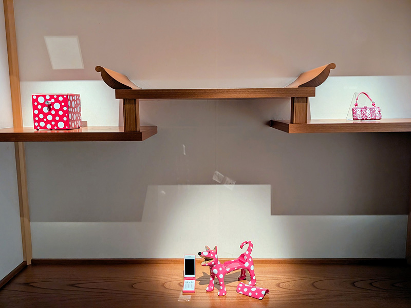室内には丸山応挙や長沢芦雪らの日本画と、草間彌生らの現代美術が同居している。