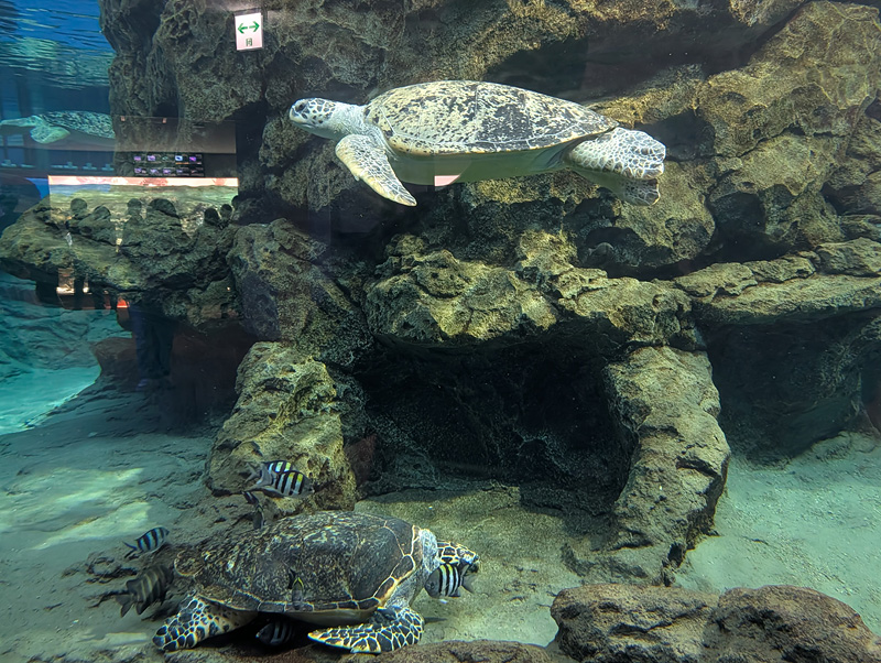 仙台では狭い水槽で可哀想だったウミガメも、ここでは悠々。