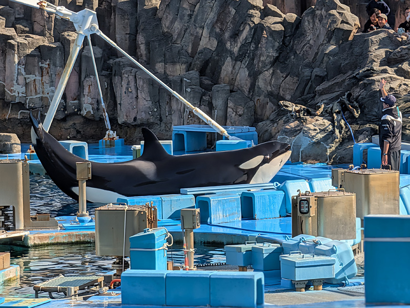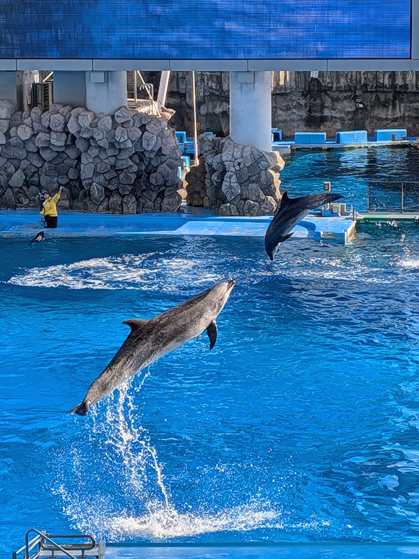 どちらも、イルカやシャチに過度なストレスをかけないよう、配慮している感じだ(イルカの芸は、抑え気味という印象。シャチは、観客席から離れたところでトレーニング)。