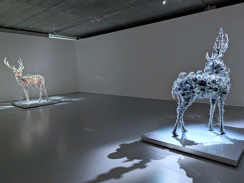 その後、Claude Monetや Vincent van Gogh、Henri Rousseauらの作品などが並び、ポーラ美術館収蔵品のレベルの高さを見せつけられて、最後は、名和晃平の「PixCell-Deer」2体。現代美術の展覧会でPixCellシリーズは何度か観たことがあるが、この大きさが二つ並ぶと壮観。しかも、一体は、通常の鹿の剥製に透明の球体を付けたものだが、もう一体は、鹿の剥製を緑に染めていて、なんとも深みのある色を放っている。この2体が対峙する空間が放つ磁力は、癖になる。