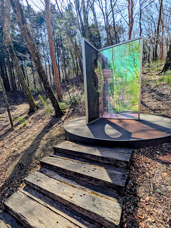 食後の腹ごなしに、美術館の周囲に整備された遊歩道を散策。森の中のあちこちに、彫刻などの造形作品が置かれている。写真は、SHIMURAbrosの「Light Odyssey」