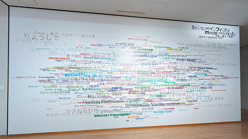 宇宙や量子などのサイエンス領域とアートのコラボレーションによって「世界の成り立ち」や「見えない世界」について考えるという趣向で、科学者による宇宙研究や、アーティストの「宇宙」に関する作品群、さらに、国産量子コンピュータによる初のアート作品などが展示されているという。