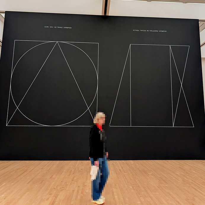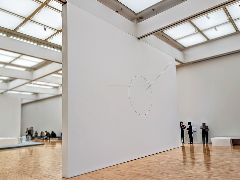 ただし、展示されている「ウォール・ドローイング」は、Sol LeWitt本人が制作した物ではない。彼が作ったのは、“アーティスト本人以外の手で描かれること”を想定した指示書。今回の展示は、彼の財団が指定した”ドラフト・パーソン”の手によって、美術館の壁面に新たに描かれた物。コンセプチュアル・アート作家の面目躍如である。