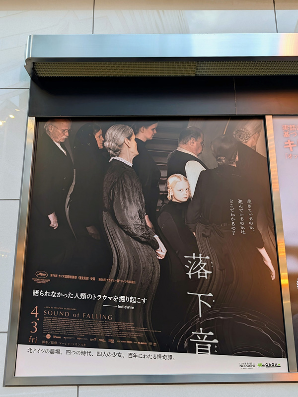 ドイツ映画を観てきた。邦題は、「落下音」。なお、ドイツ語では”In die Sonne schauen”というタイトルが付いているが(”太陽を直視する”という意味)、”Sound of Falling”の方が監督が決めたオリジナルだそうだ(ドイツの配給会社にドイツ語タイトルを依頼されたが、”Sound”に相当する適切な単語が無かったとのこと)。