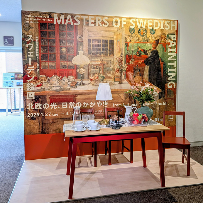 展覧会のキー・ヴィジュアルには、スウェーデンの国民的画家と言われるCarl Larssonの作品が使われている。スタッフの方の熱意の発露だと思うのだが、展示室の最後には実物のテーブルセットと組み合わせたディスプレイが飾られていた。が、絵画の再現度という意味では中途半端なのが、残念(もちろん、展覧会自体の価値とは別の話だが)。
