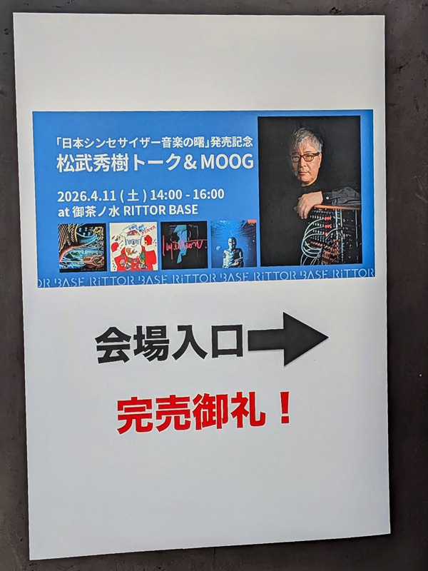 「日本シンセサイザー音楽の曙」の発売を記念したイベントを観に、お茶の水 RITTOR BASEに行ってきた。これは、日本のシンセサイザー音楽黎明期、1970年代のアルバムから、未CD化の貴重作 4枚を、松武秀樹監修のもと復刻する企画。