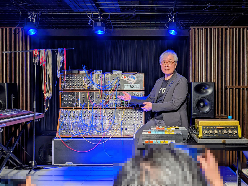 お茶の水 RITTOR BASEは、「キーボード・マガジン」など音楽関連の雑誌でお馴染みの出版社、リットーミュージックが開設した多目的スペースで、プロ用のガチの音響機材が揃っている。ここで、アルバムの曲をハイレゾで試聴しつつ、松武秀樹による解説、さらには、1972年から彼が実際に使っているMOOG IIIcで、音作りの実演も披露してもらうという趣向。イベントのMCは、「サウンド&レコーディング・マガジン」元編集長で、RITTOR BASEディレクターの國崎晋。