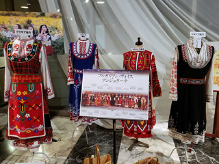 すみだトリフォニーホールのロビーでは、民族衣装の展示や、ブルガリアの紹介パネル展示、グッズの販売などが行われている。それらを冷やかした後、開演まで、ホール内のカフェで、ブルガリア・ワイン。ちょっとしたブルガリア物産展という印象である。