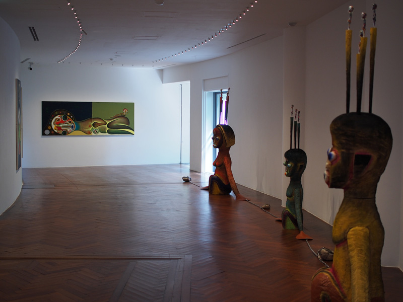 東京での大規模な個展はこれが初めてということだが、彼の作品は、これまでも原美術館の様々な企画展で目にしている。どこかの未開の部族による原始美術のような、ちょっと不気味な生命体をモチーフにした作品は、一目で加藤泉のものだと分かる個性に溢れている。その造形は、胎児のようでもあるし、昆虫を思わせるところもあるし、異星人のようでもある。