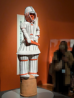 このうち、東京国立博物館が所蔵する「 挂甲の武人」を2017年から2019年にかけて解体修理した際、白、赤、灰の3色で全体が塗り分けられていたことが分かり、今回、彩色復元を実施。製作当時の姿も展示されている。素朴な土色じゃない埴輪、なんだか斬新である。