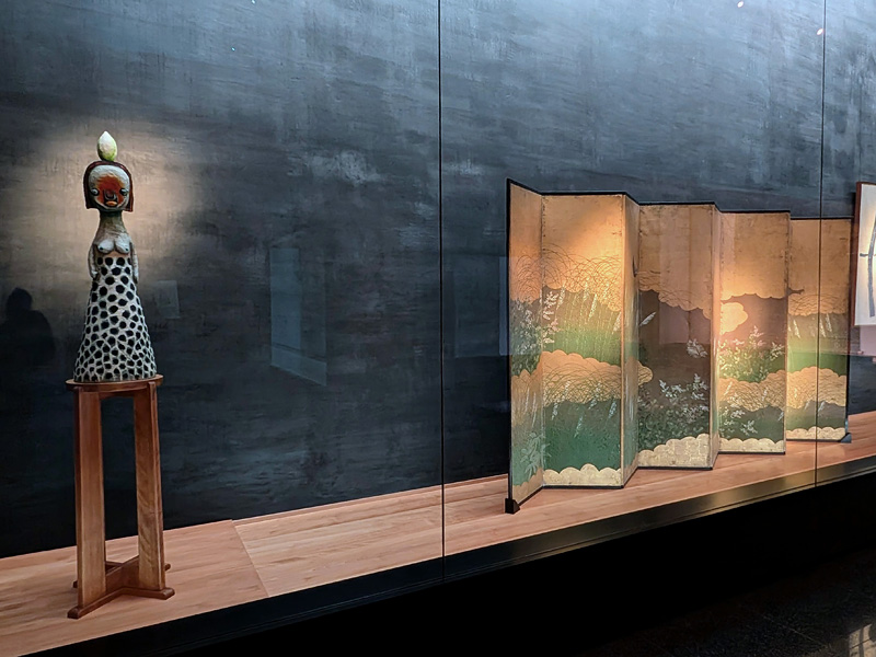 また、古美術を中心に展示する「觀海庵」では、加藤泉の現代美術と作者不詳の昔の屏風を並べるという、ここならではの展示が楽しい。