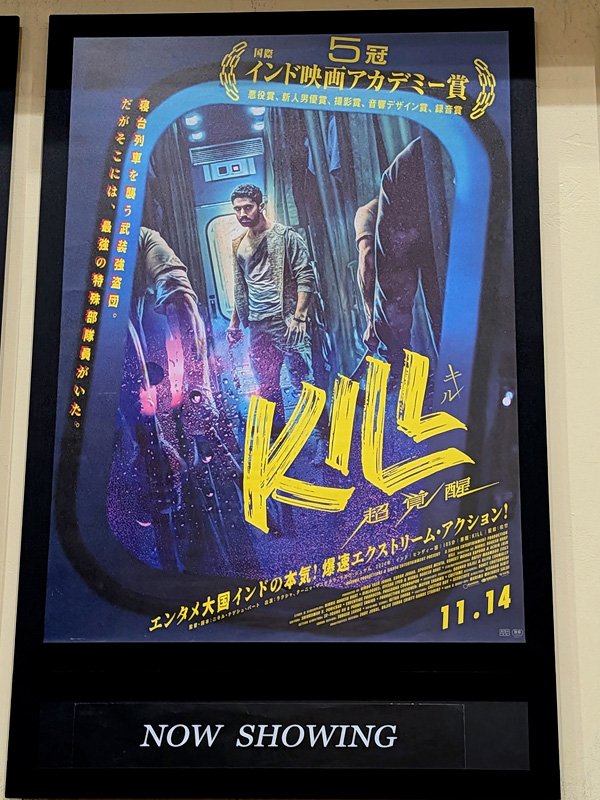 ニューデリーへ向かう特急寝台列車を舞台に、総勢40人の強盗団と、偶然乗り合わせた特殊部隊の兵士の死闘を描く、ヒンディー語映画を観てきた。邦題は「KILL 超覚醒」。なお、ハリウッドでのリメイクも決定しているそうだ。