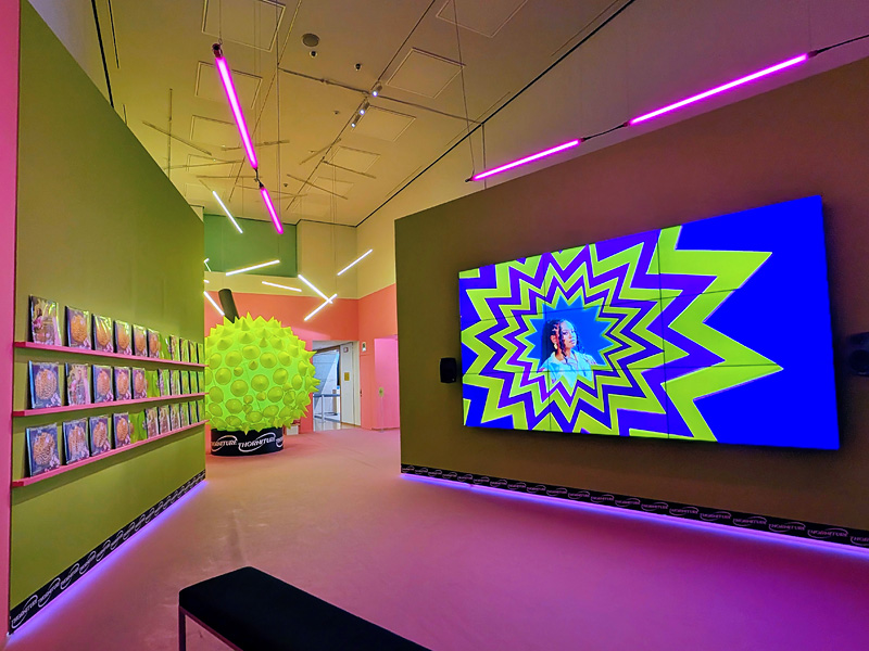 そんな中、異色だったのが、マレーシア生まれで、台湾を拠点に活動するFAMEMEのミクスト・メディア作品「THORNITURE」。ドリアンをモチーフに、蛍光色のヴィジュアルとヒップホップ音楽で、異空間を創出している。