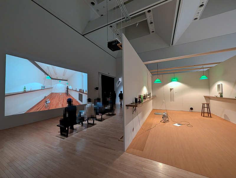 例えば、「Wrong Happy Hour」。バー風の空間が作られ、その中で行った彼女のエキセントリックなパフォーマンスが隣のスクリーンで上映されている。