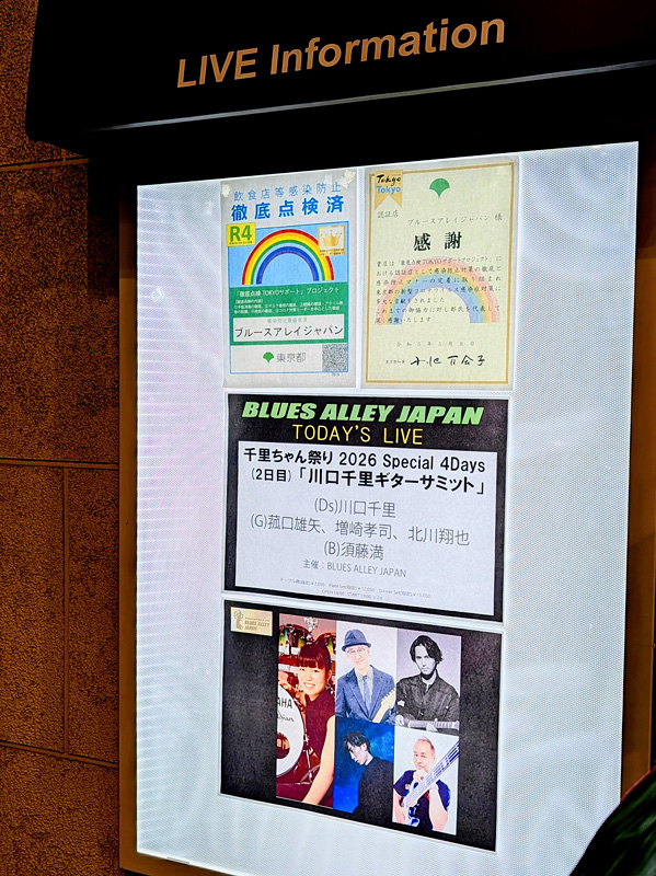 川口千里のバースデイ・ライヴ(1月8日生まれ)を観に、目黒のブルース・アレイ・ジャパンに行ってきた。この企画は毎年恒例で、今年が11年目なのだが、私は昨年に続いて2度目の参戦である。