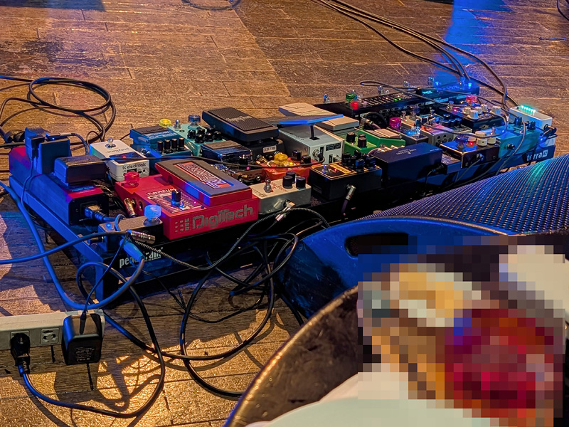 ステージ上の並びは、奥に、川口千里と、彼女が信頼を寄せるベーシスト、須藤満。前列左から、若手枠の北川翔也(昨日のキーボード、友田ジュンと同じDEZOLVEのメンバー)、ベテラン枠の増崎孝司(DIMENSION)、そして、昨日からの連投、中堅枠の菰口雄矢と、3人のギタリストが並ぶ。因みに、私の席は北川翔也の近くだったのだが、足下のエフェクターの多さにビックリ(他の2人のギタリストからもイジられていた)。