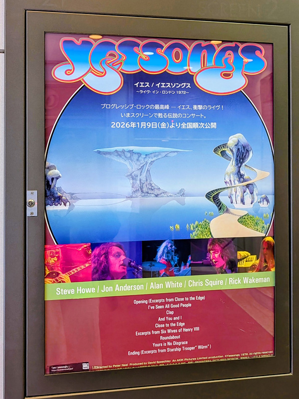 いずれにしても、初見という訳じゃないので、あまり文句を付けても仕方ない。とにかく、映画館の大スクリーンでYESのライヴが観られるということ自体、ありがたいのである。出来れば、立川シネマシティや川崎チネチッタのような、爆音仕様の映画館で観たかったところだが(TOHOシネマズシャンテは、圧倒的に音圧不足)、贅沢は言えないのだ。