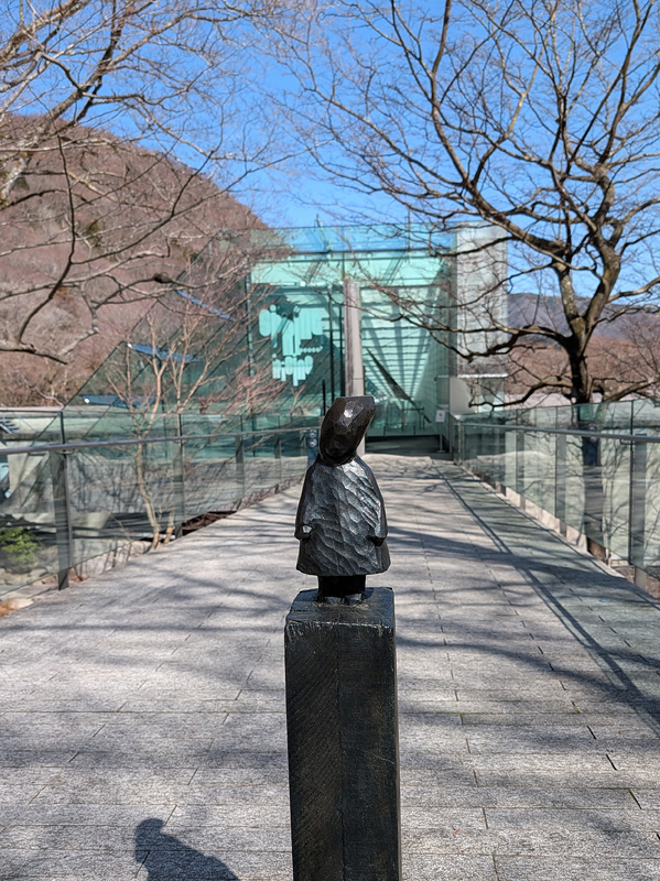 小田原から箱根登山鉄道で強羅。平日でも、インバウンドだけでなく、日本人観光客も結構多い。強羅駅前からは、美術館の無料送迎バスを利用。入り口で出迎えてくれる板東優の彫刻「雪の子」が可愛い。